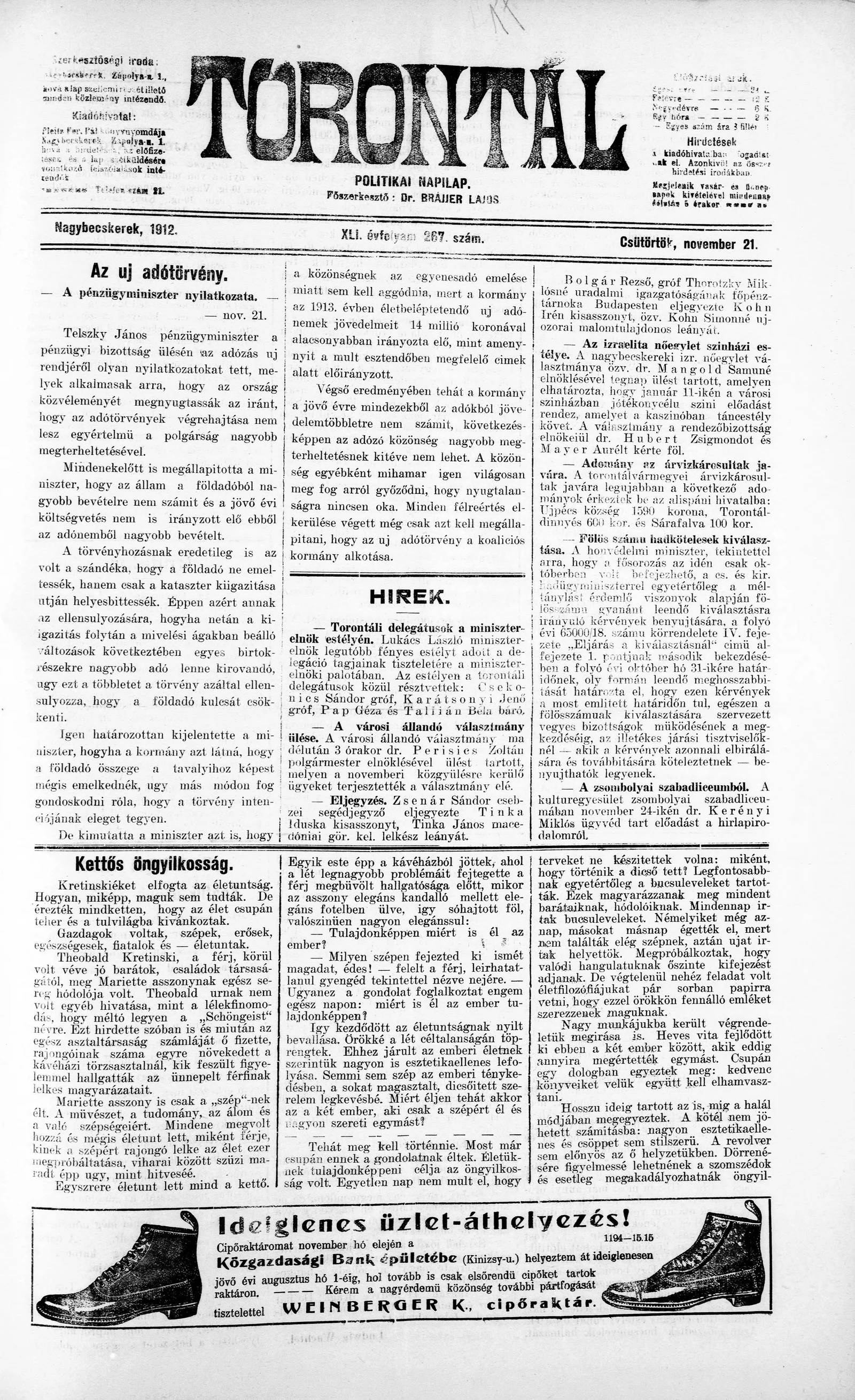 Torontál, 41. évf. 1912. november 21. 267. sz.