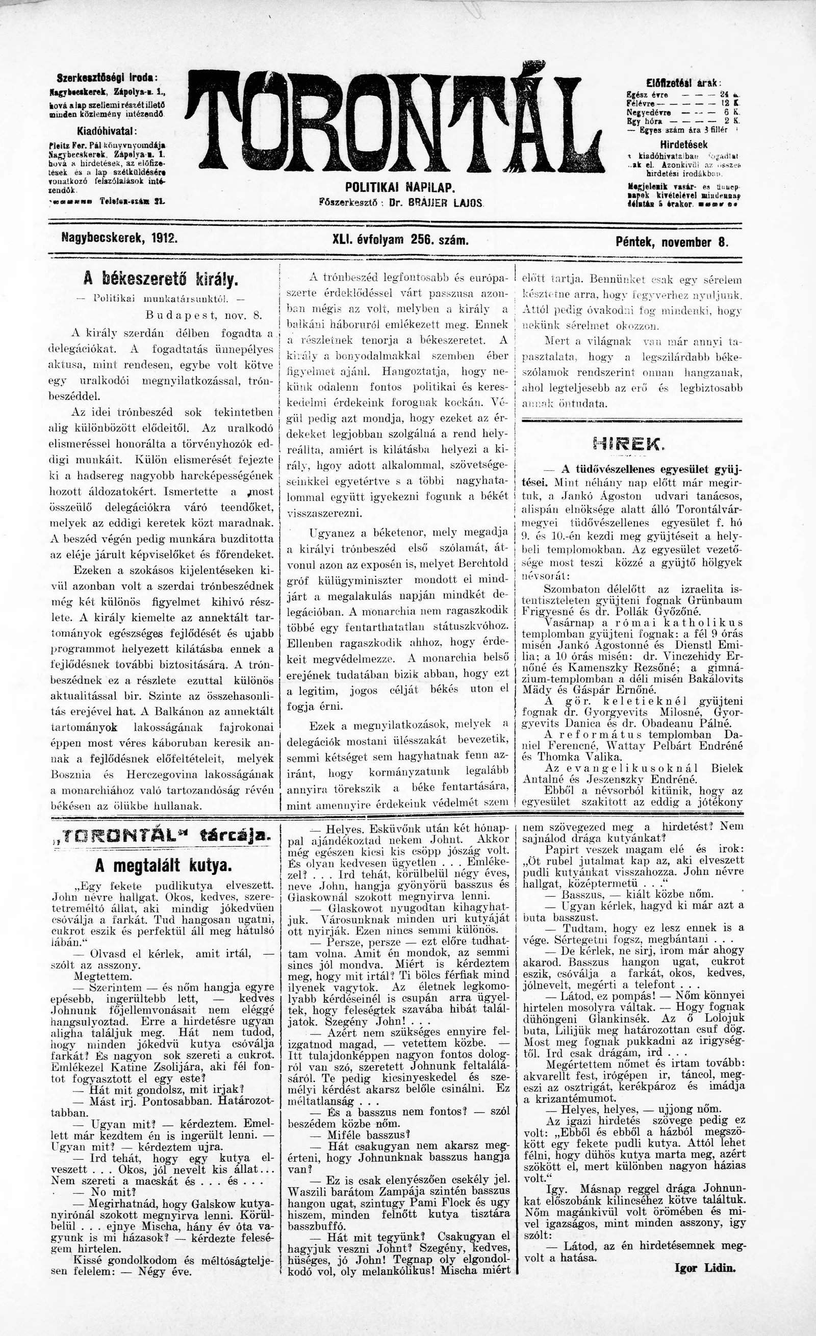 Torontál, 41. évf. 1912. november 8. 256. sz.