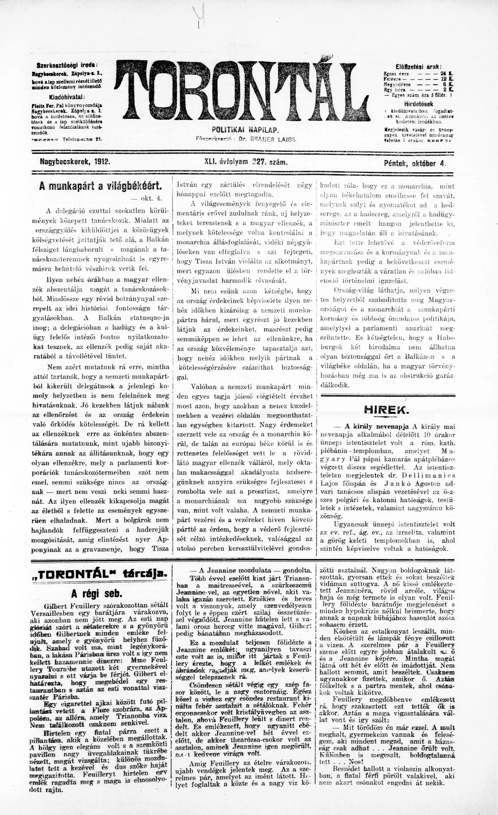 Torontál, 41. évf. 1912. október 4. 227. sz.