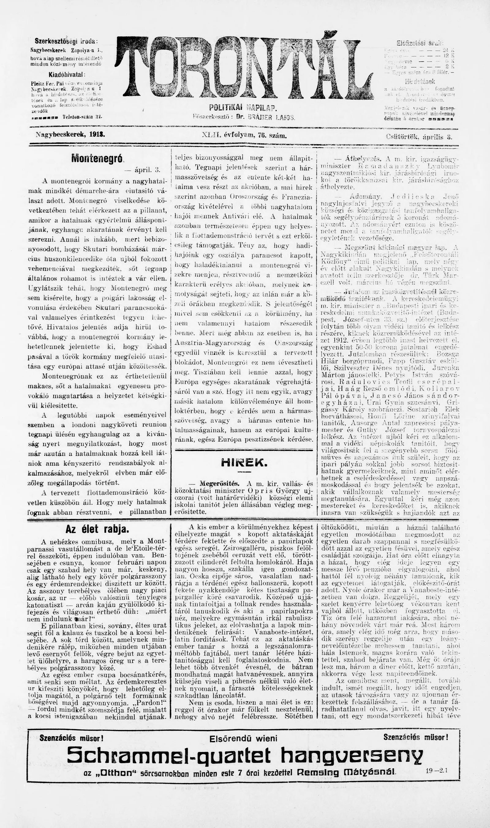 Torontál, 42. évf. 1913. április 3. 76. sz.