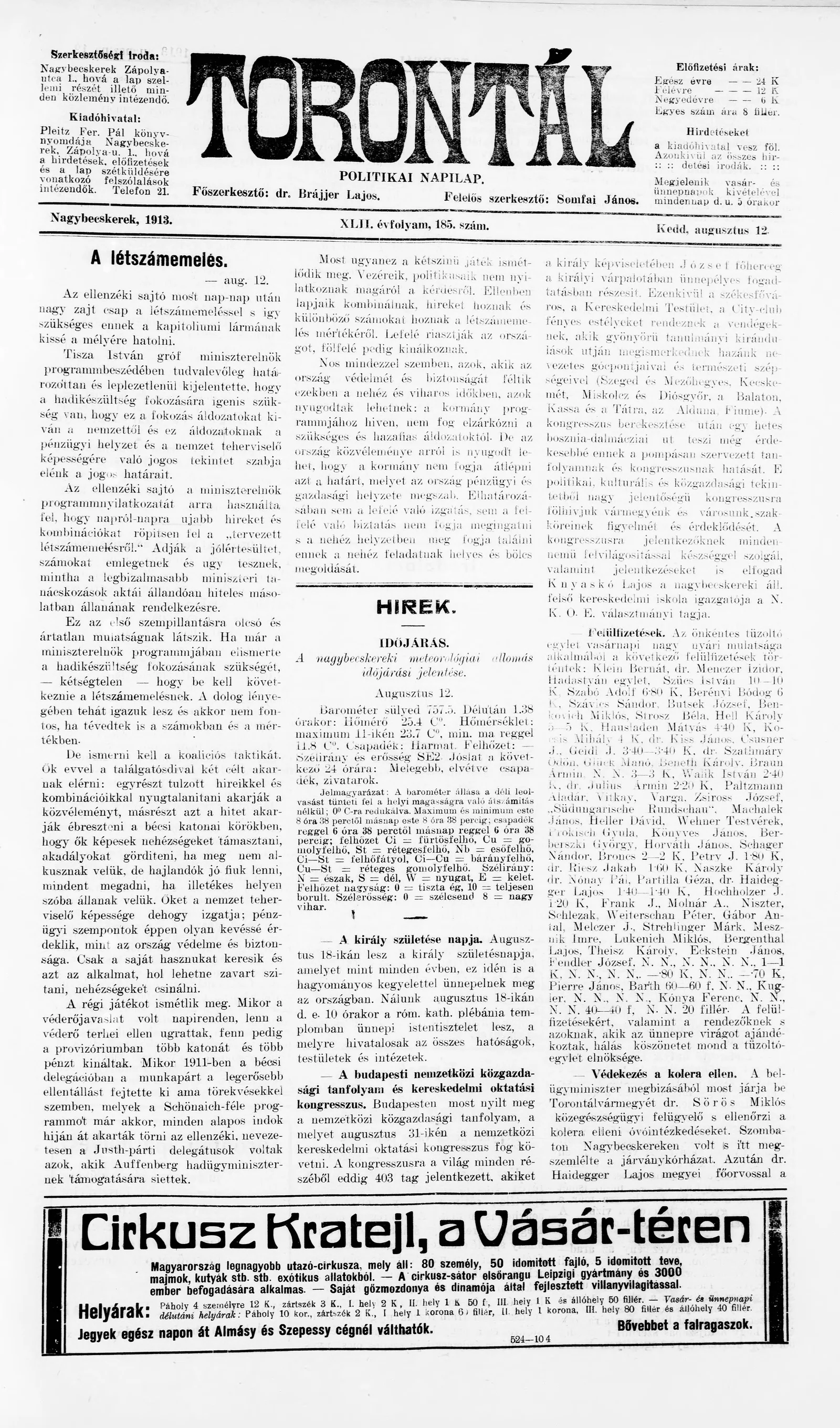 Torontál, 42. évf. 1913. augusztus 12. 185. sz.