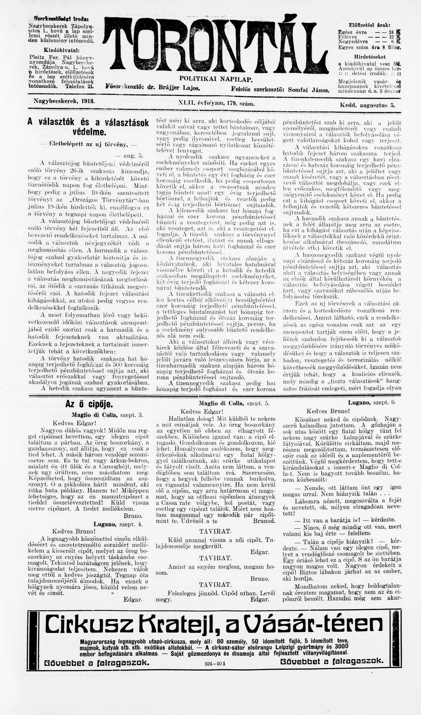Torontál, 42. évf. 1913. augusztus 5. 179. sz.