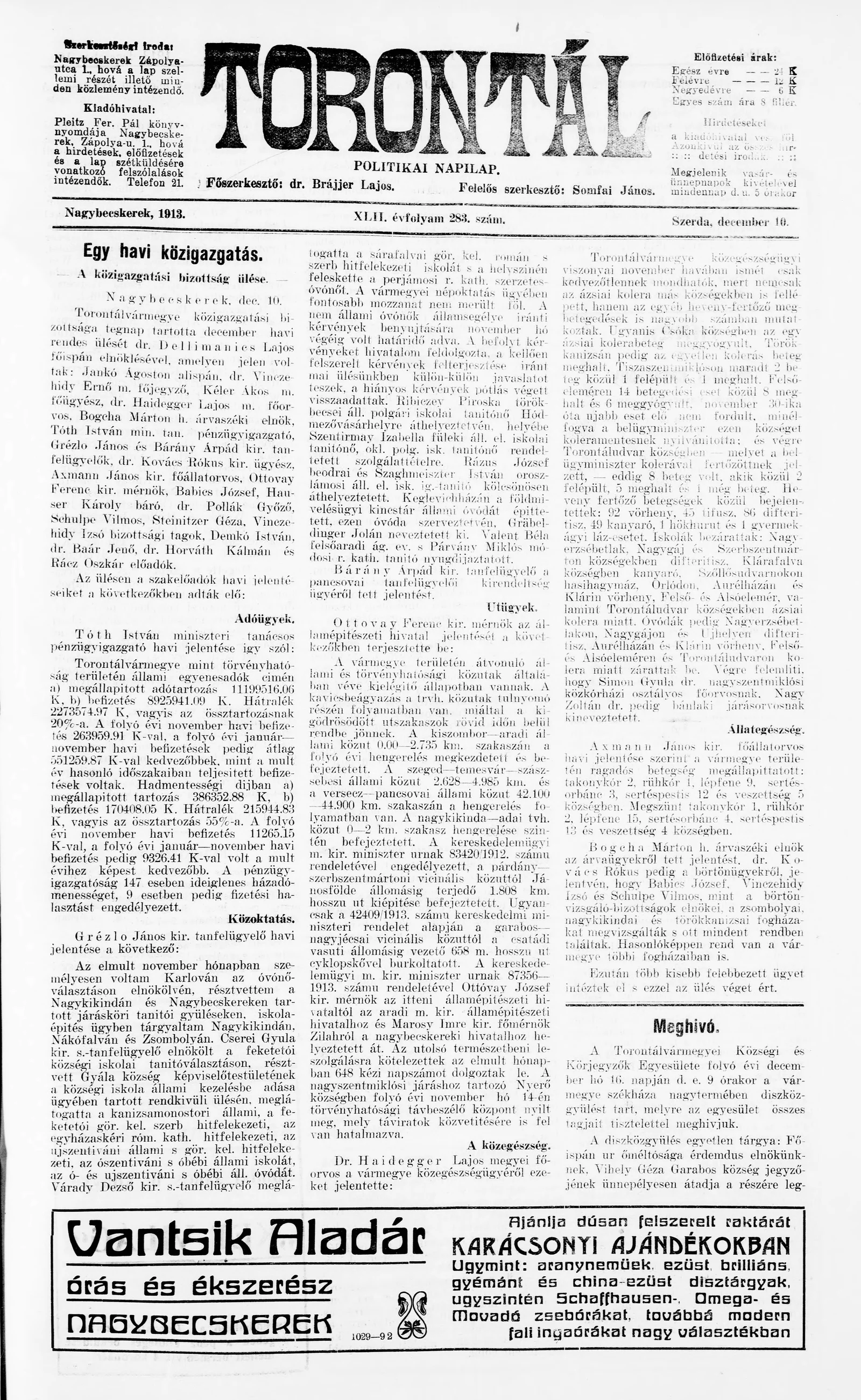 Torontál, 42. évf. 1913. december 10. 283. sz.