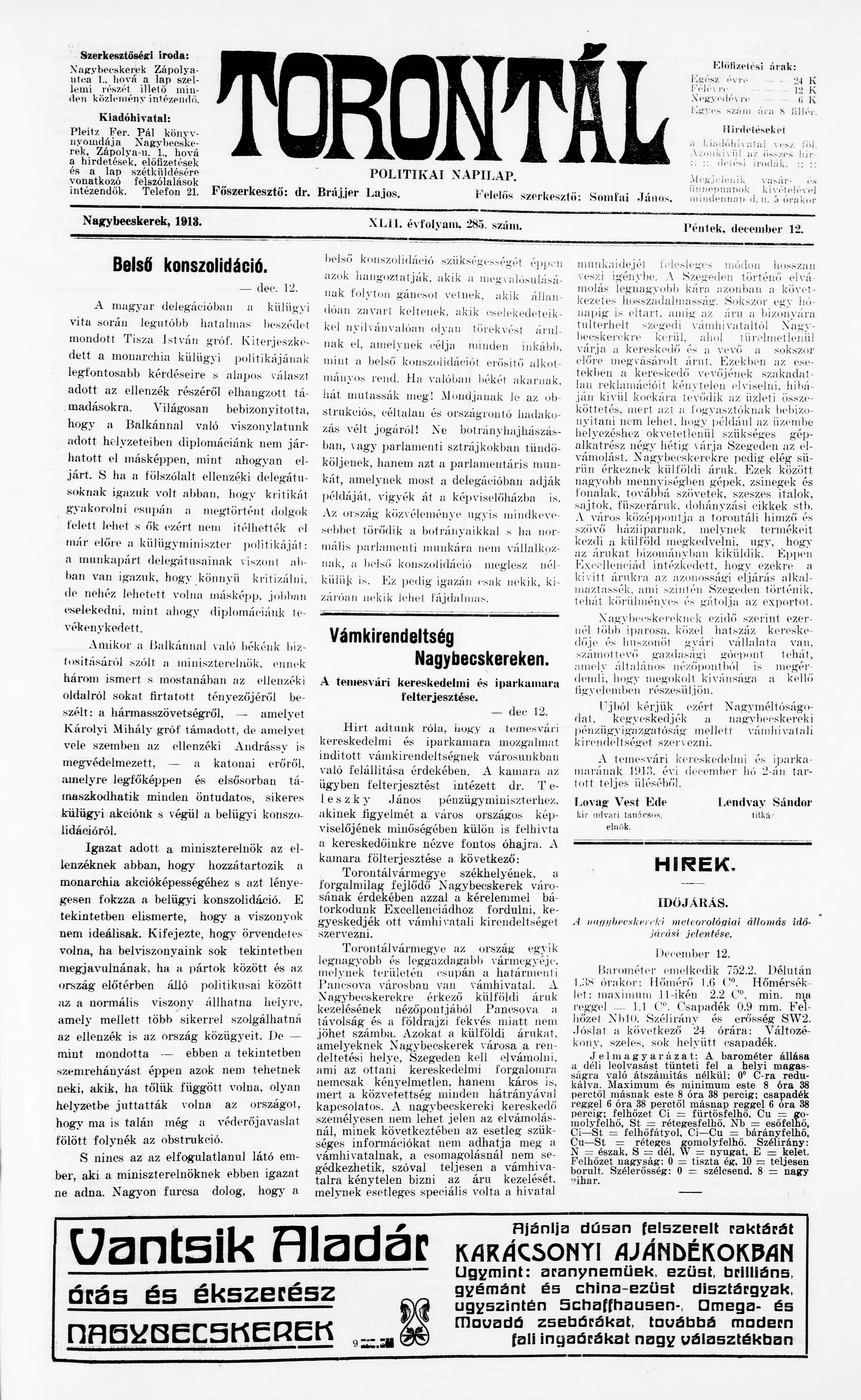 Torontál, 42. évf. 1913. december 12. 285. sz.