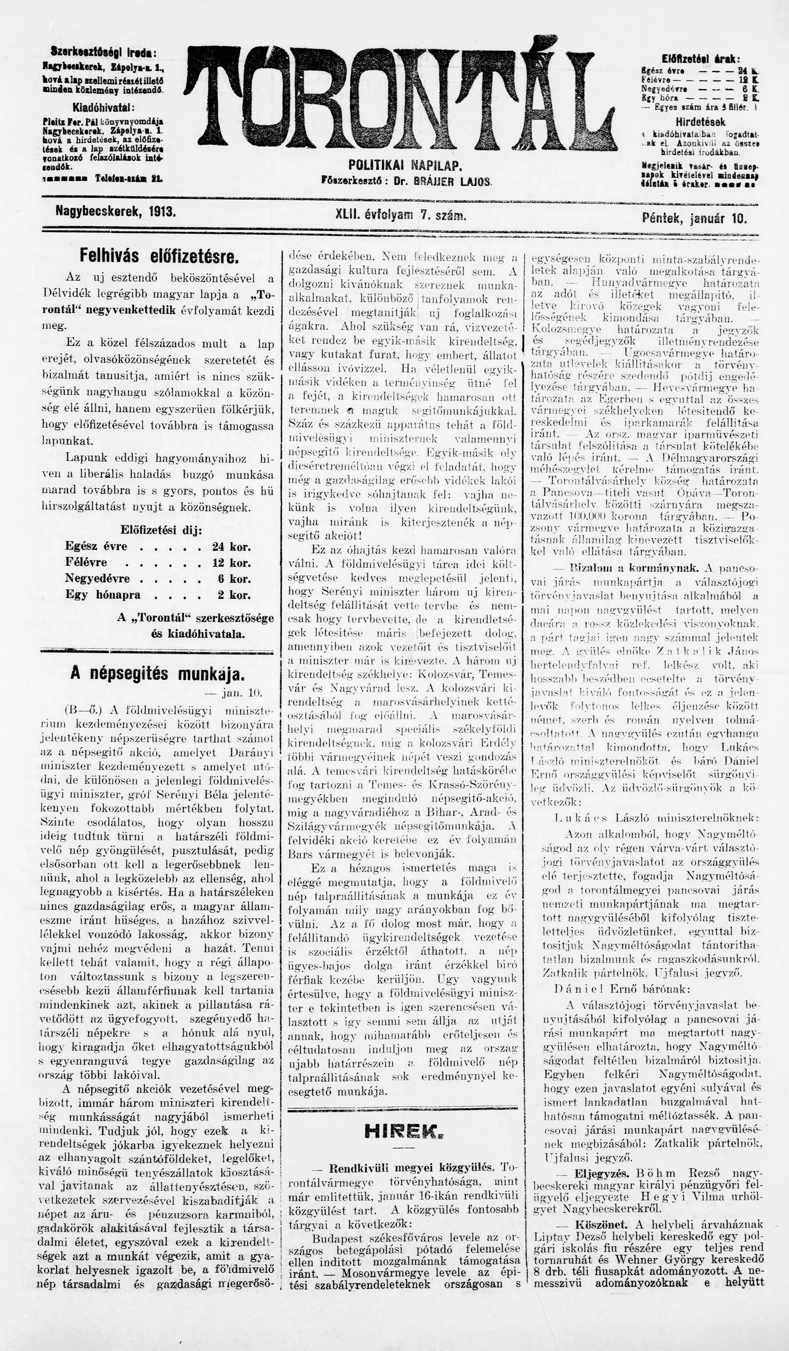 Torontál, 42. évf. 1913. január 10. 7. sz.