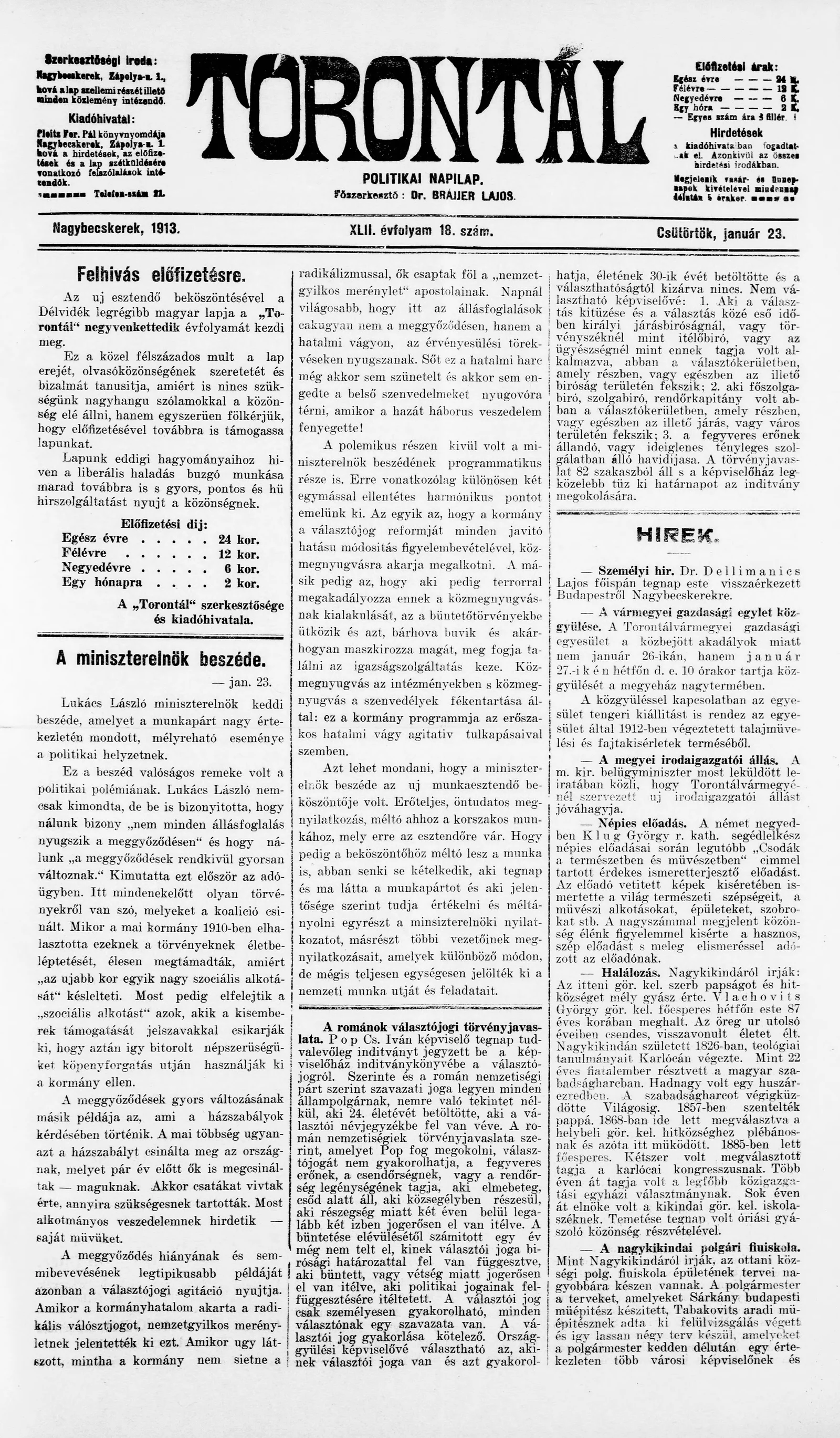 Torontál, 42. évf. 1913. január 23. 18. sz.