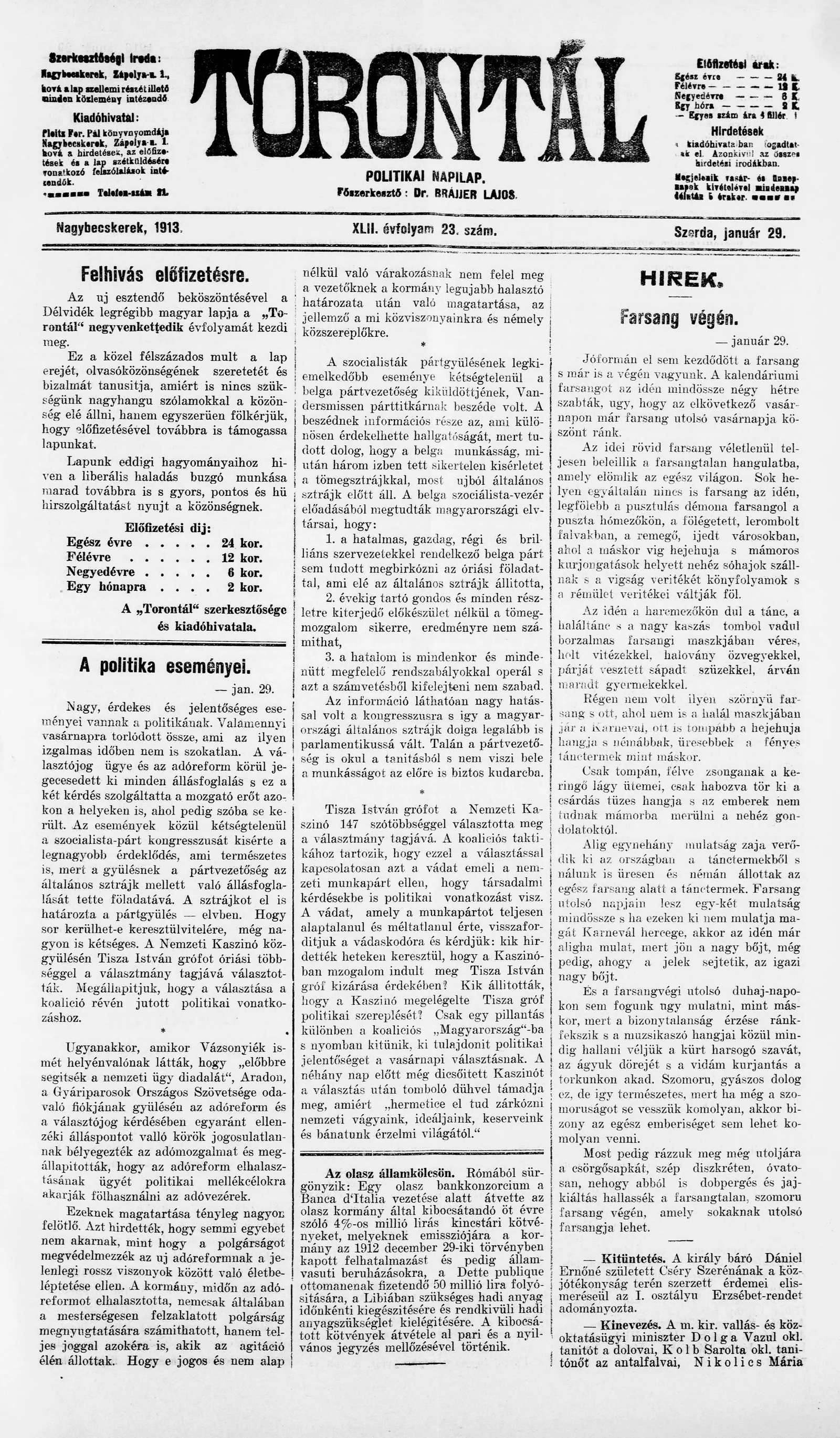 Torontál, 42. évf. 1913. január 29. 23. sz.