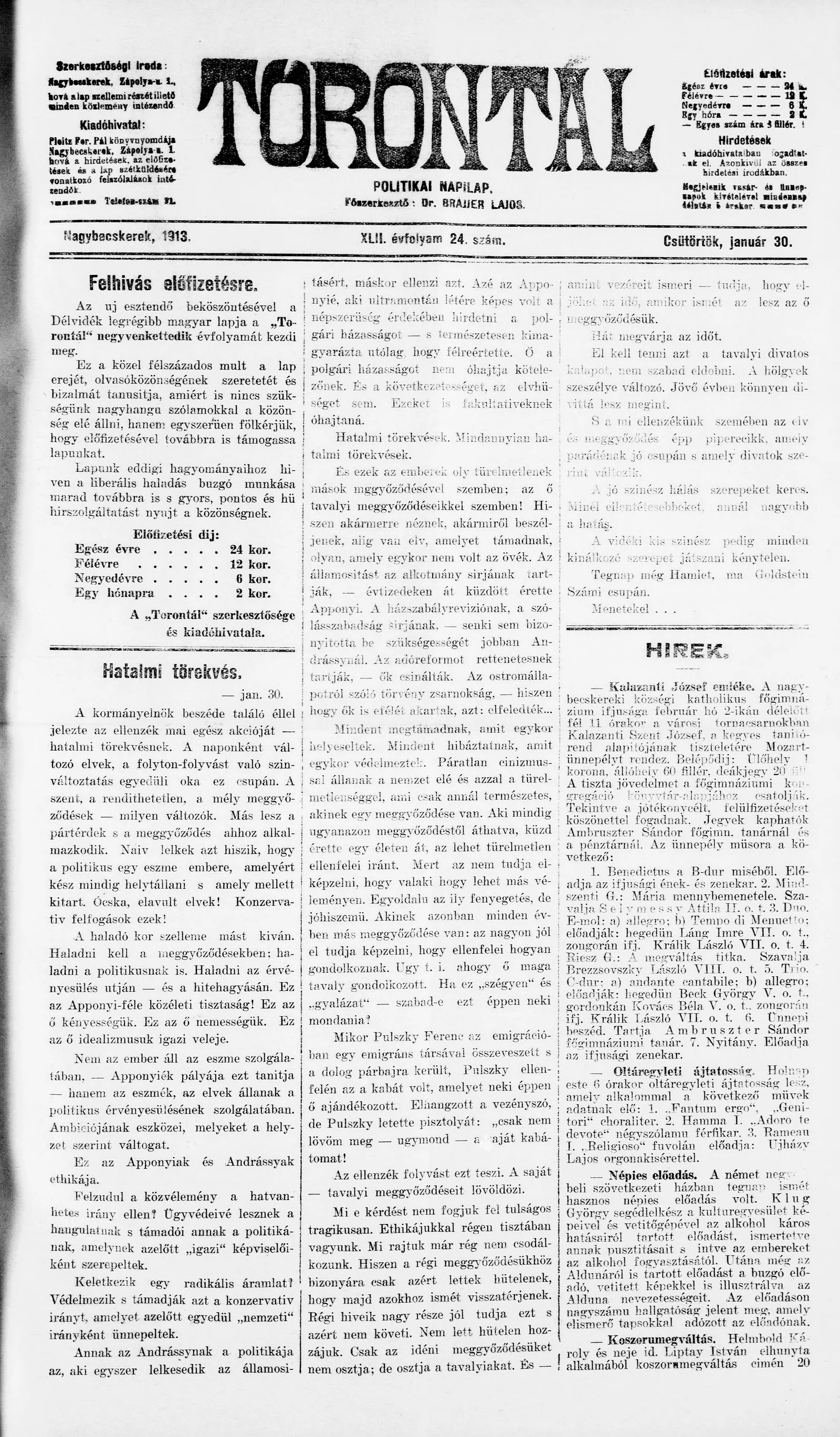 Torontál, 42. évf. 1913. január 30. 24. sz.