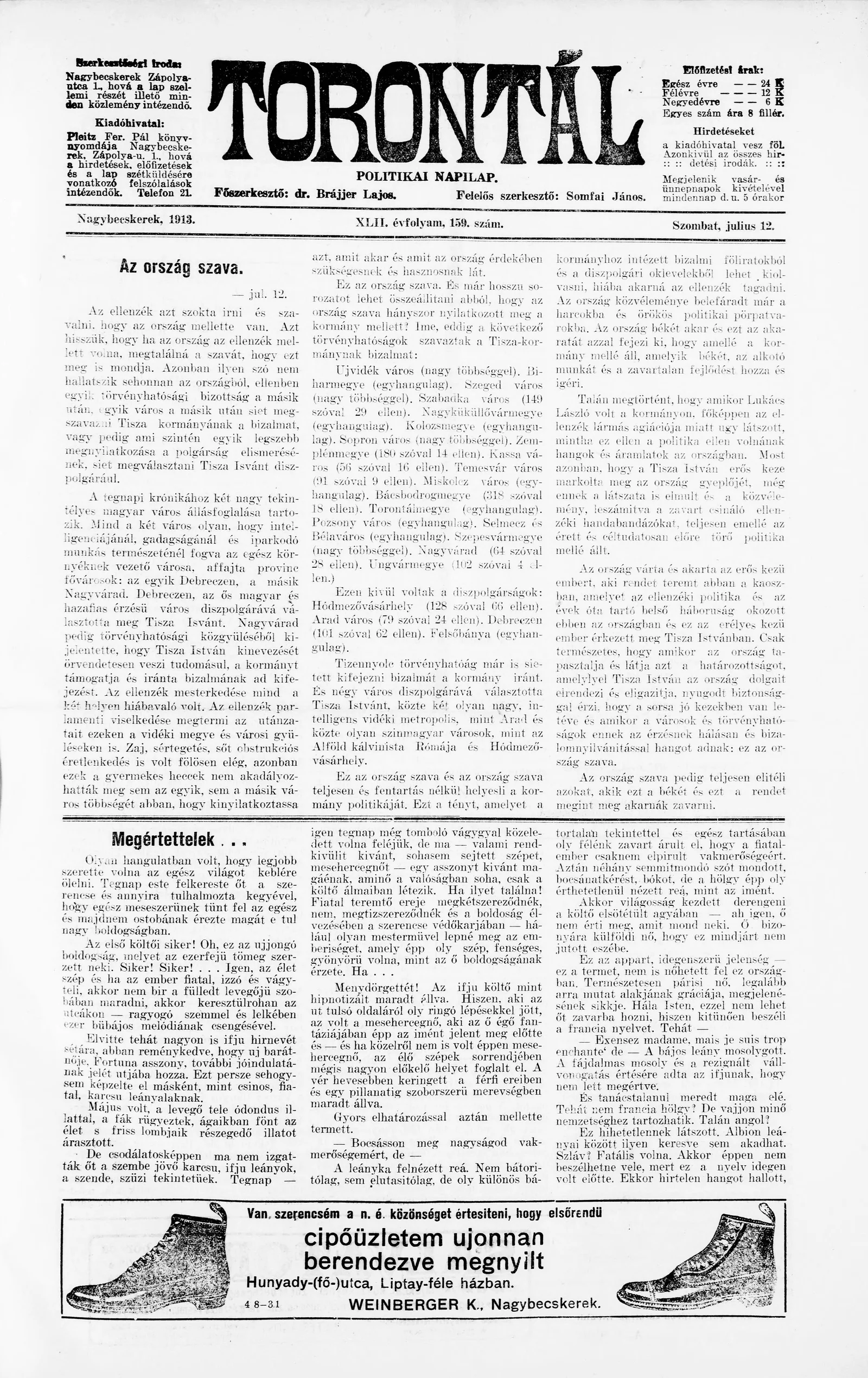 Torontál, 42. évf. 1913. július 12. 159. sz.