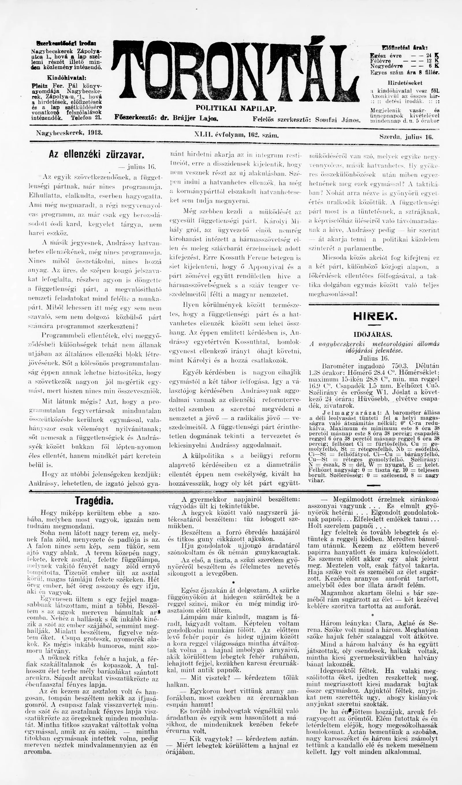 Torontál, 42. évf. 1913. július 16. 162. sz.