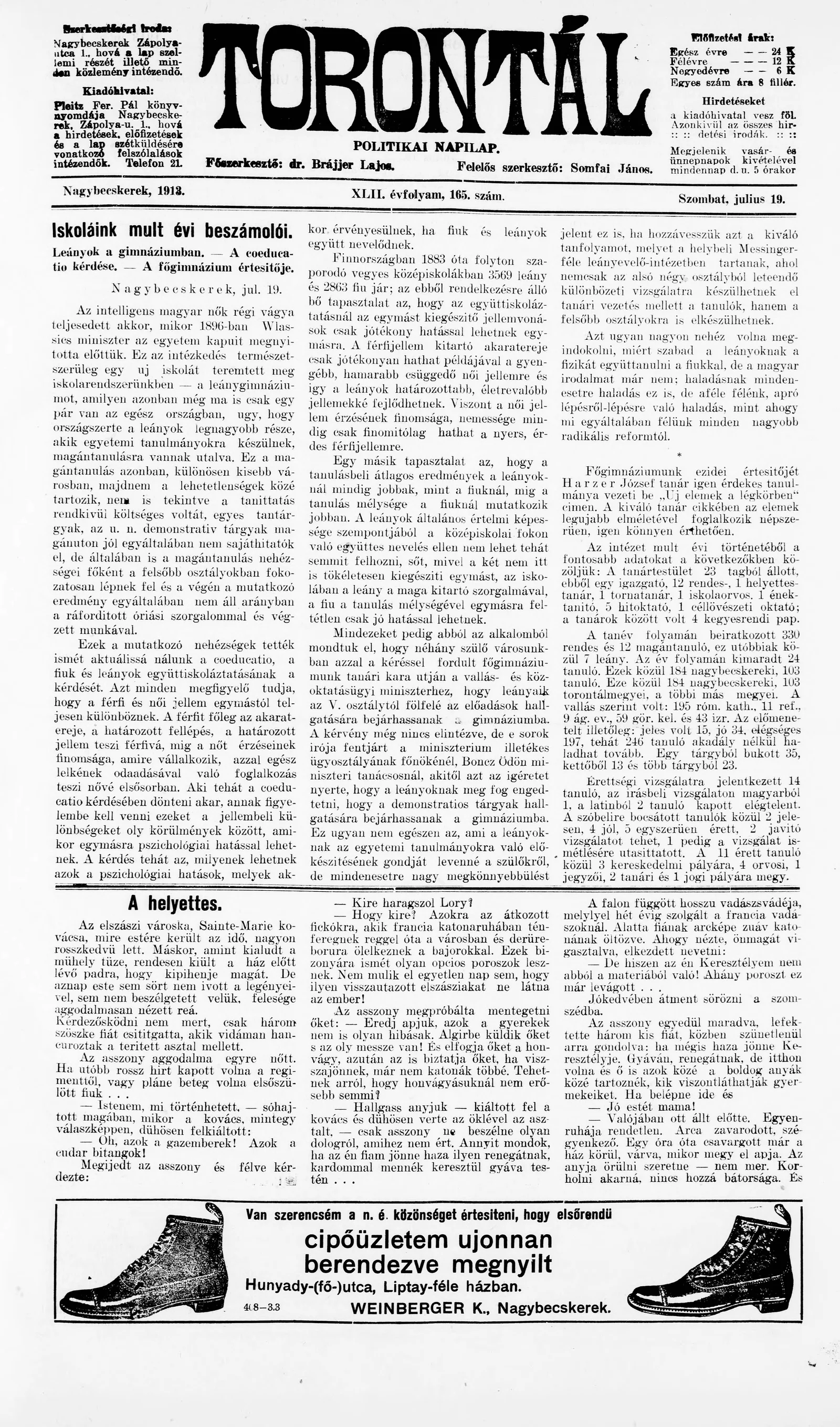 Torontál, 42. évf. 1913. július 19. 165. sz.