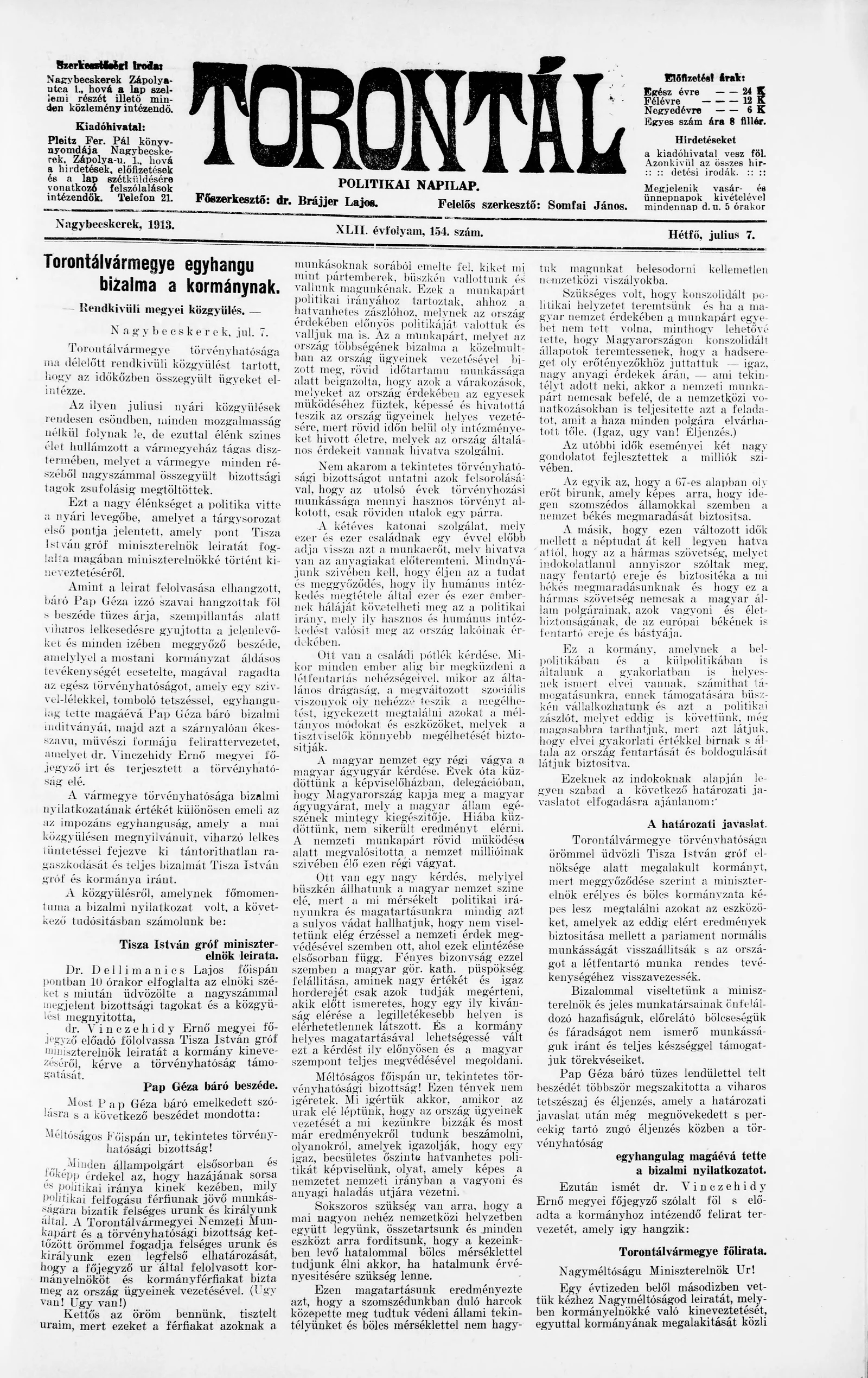 Torontál, 42. évf. 1913. július 7. 154. sz.