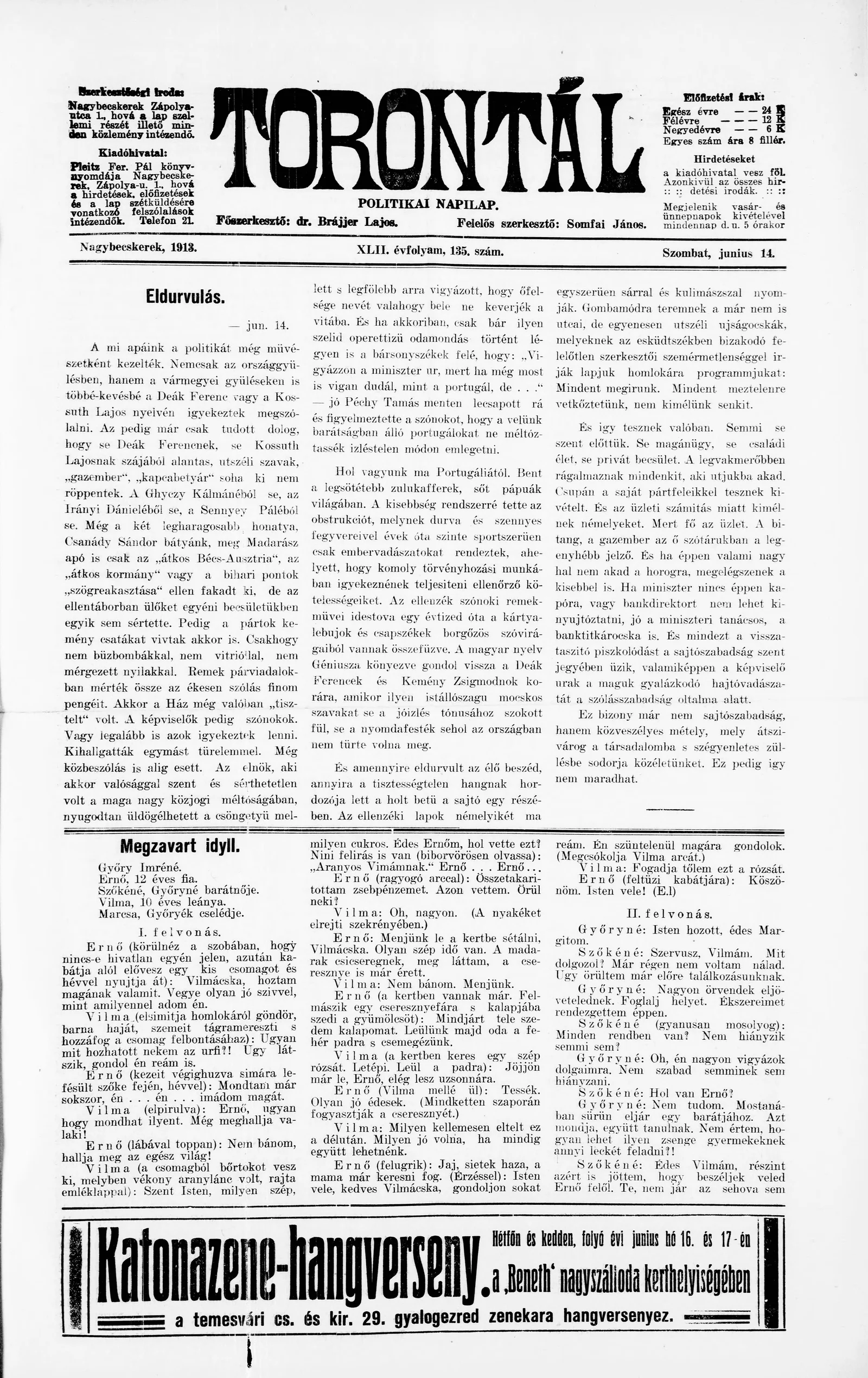 Torontál, 42. évf. 1913. június 14. 135. sz.