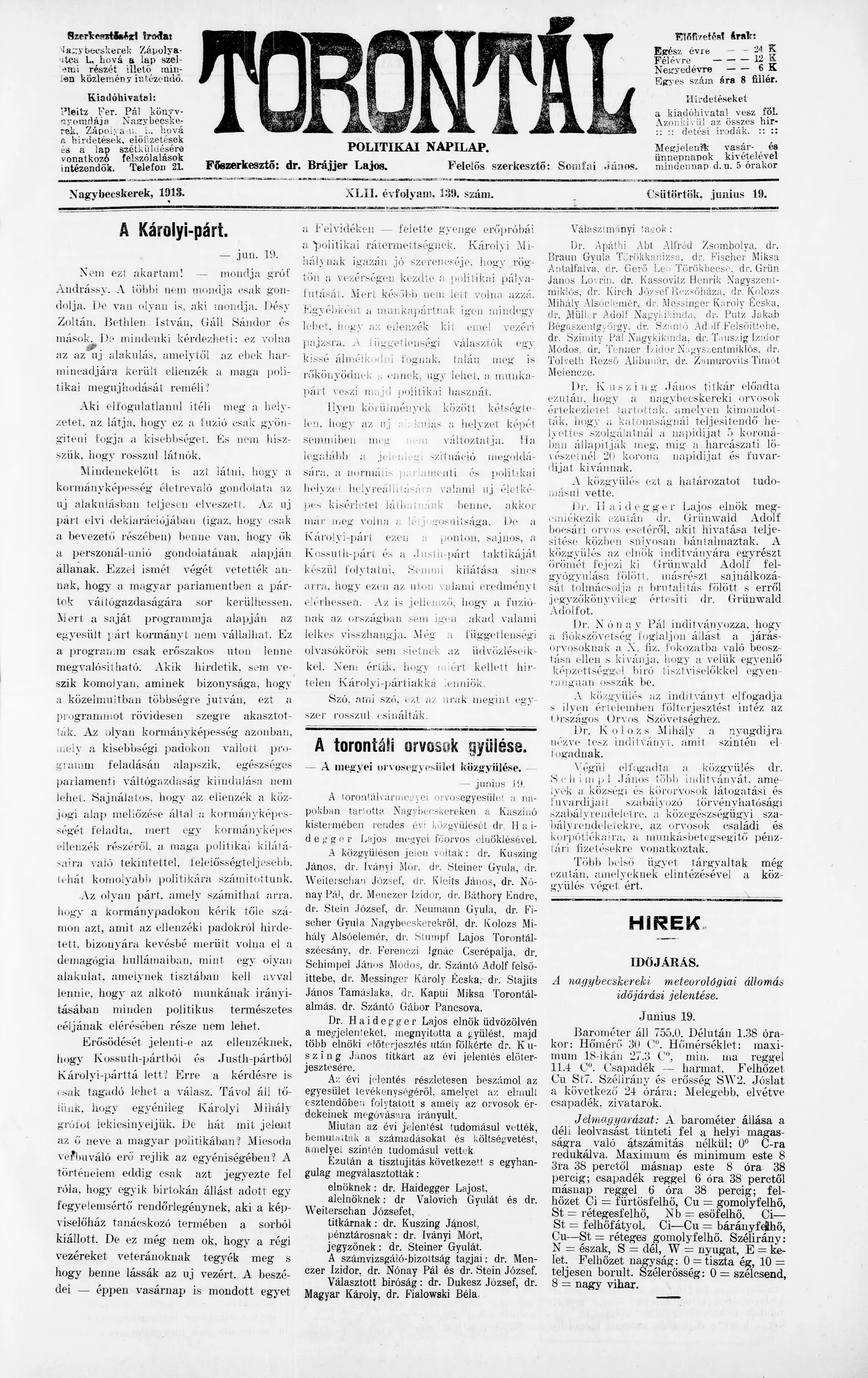 Torontál, 42. évf. 1913. június 19. 139. sz.