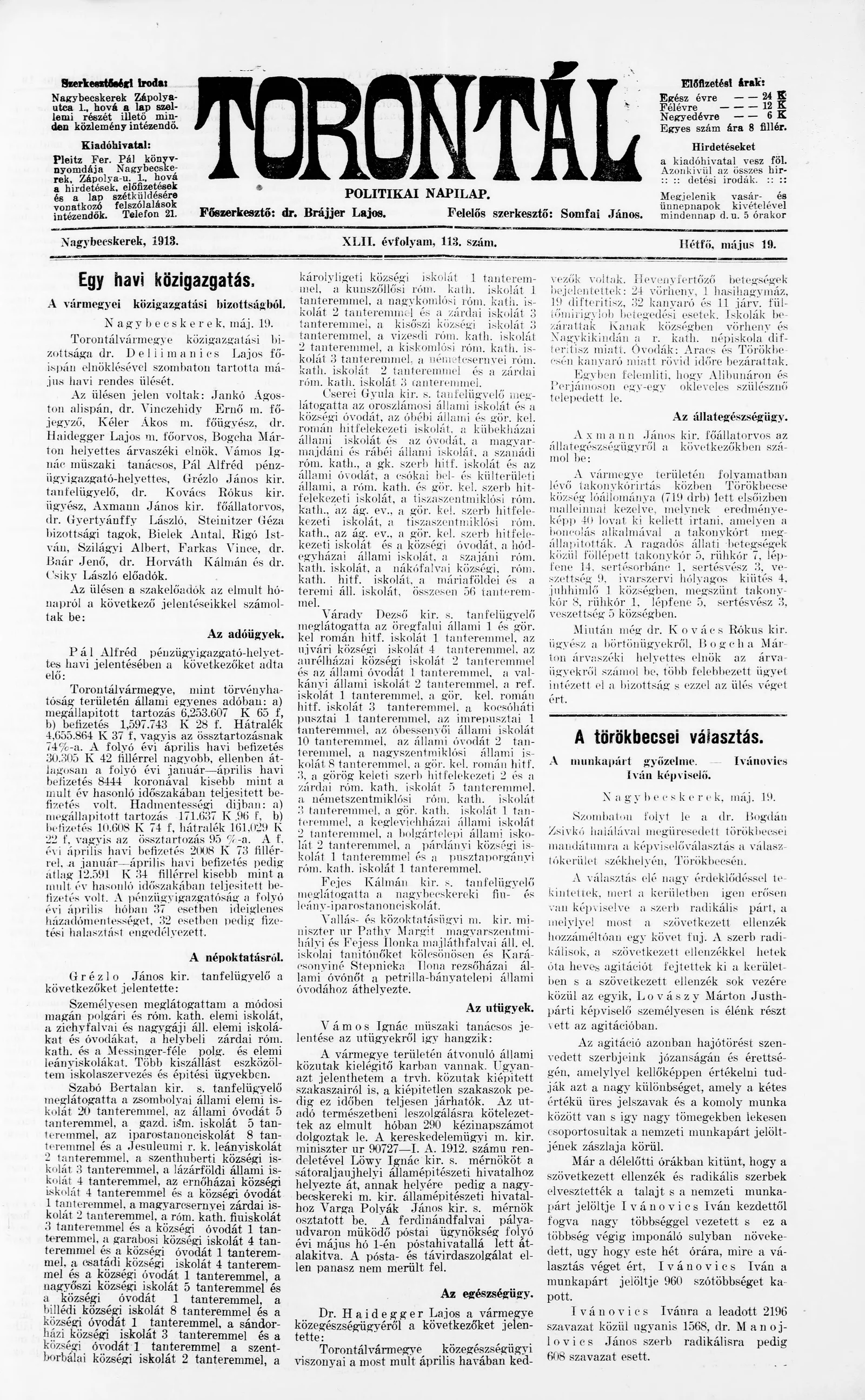 Torontál, 42. évf. 1913. május 19. 113. sz.