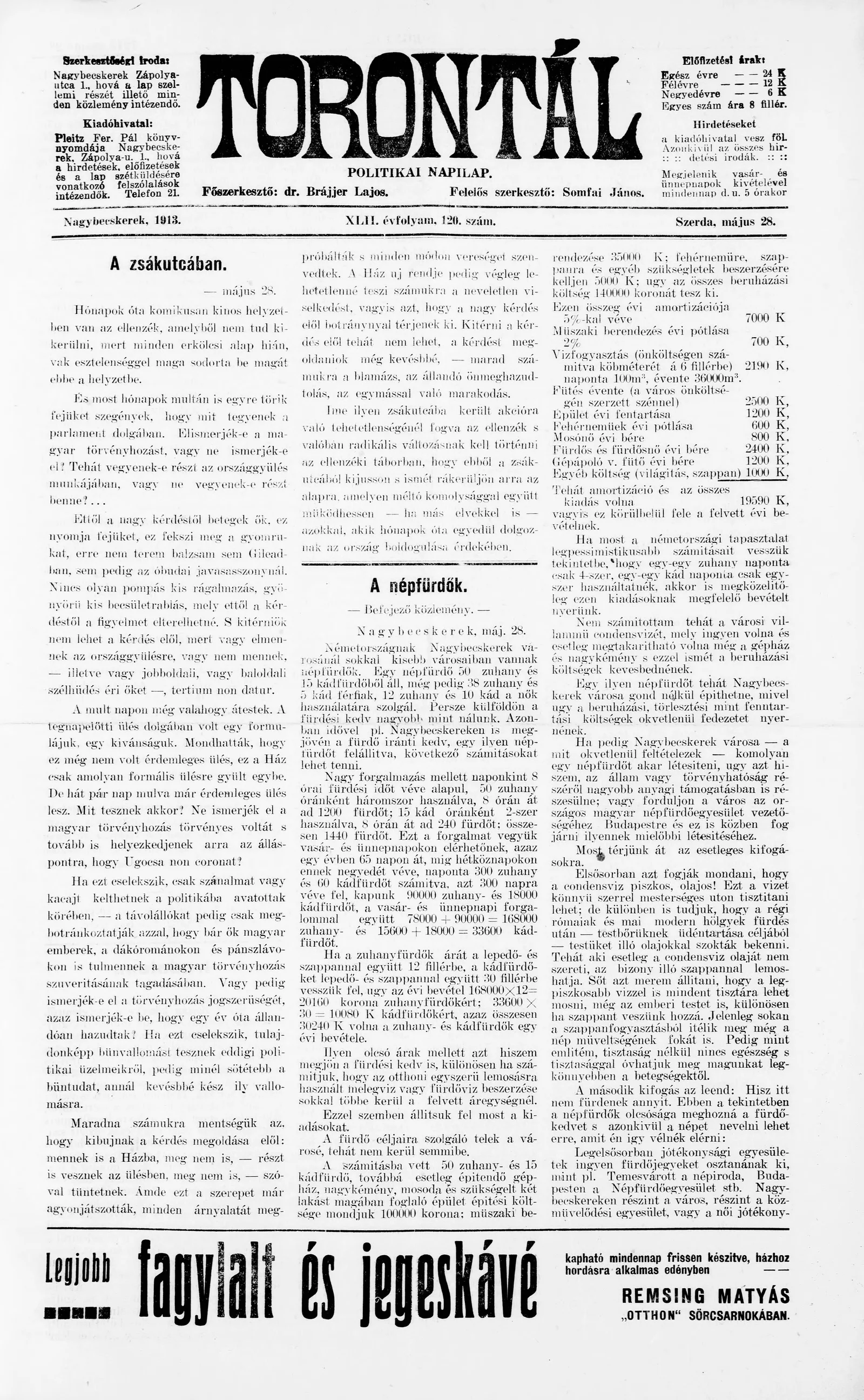 Torontál, 42. évf. 1913. május 28. 120. sz.