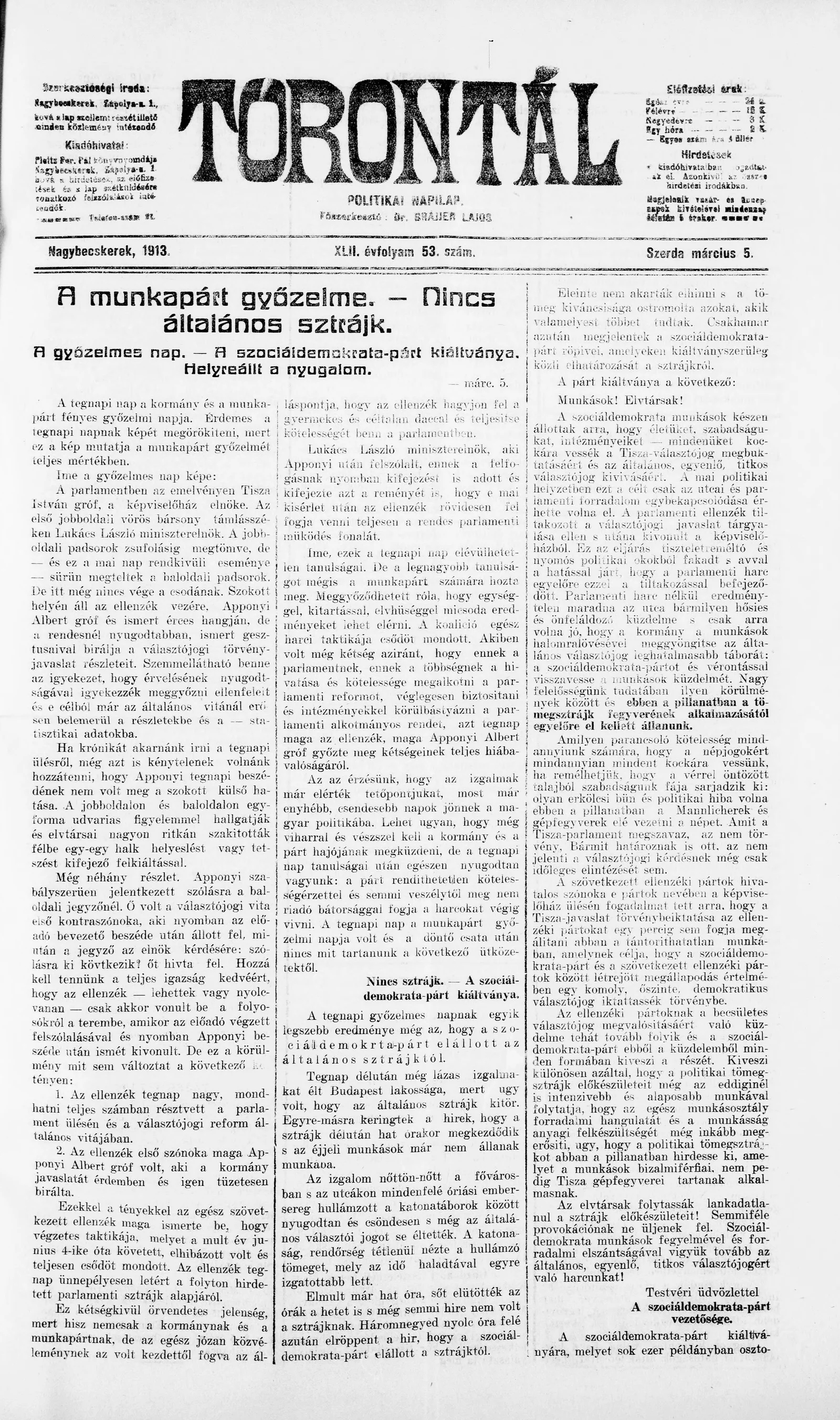 Torontál, 42. évf. 1913. március 5. 53. sz.
