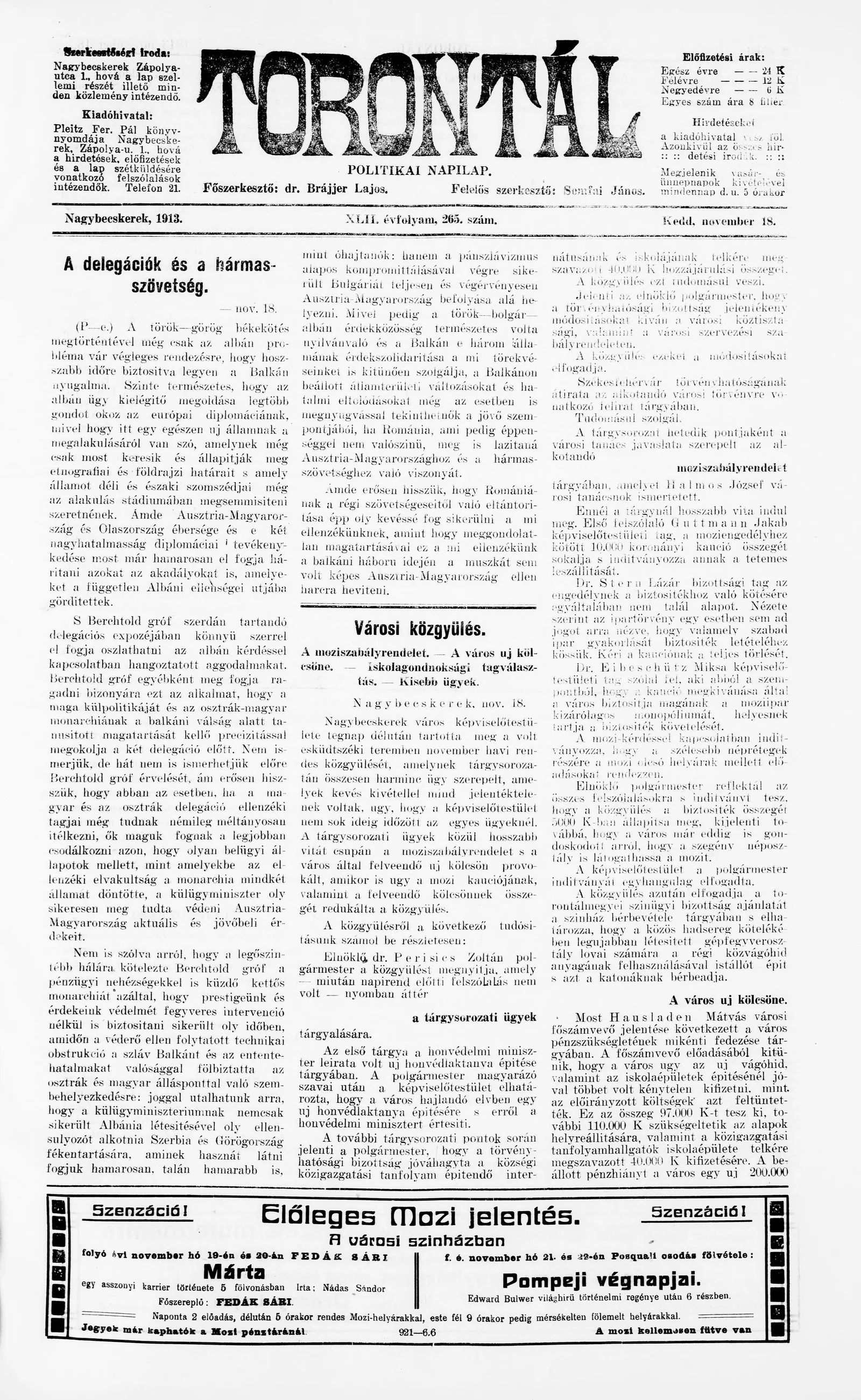 Torontál, 42. évf. 1913. november 18. 265. sz.