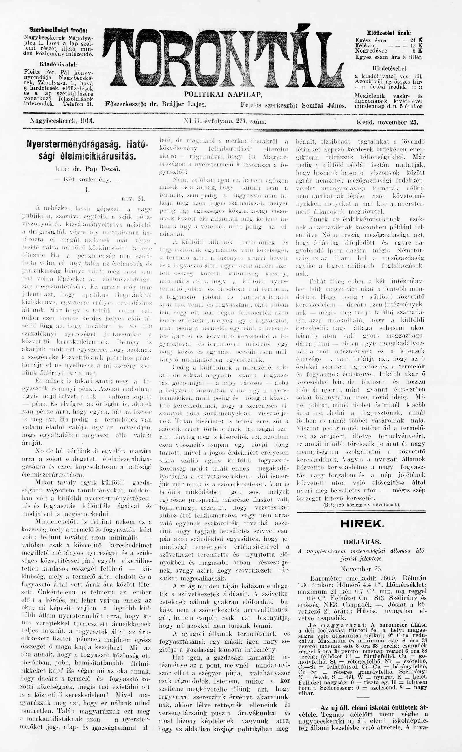 Torontál, 42. évf. 1913. november 25. 271. sz.
