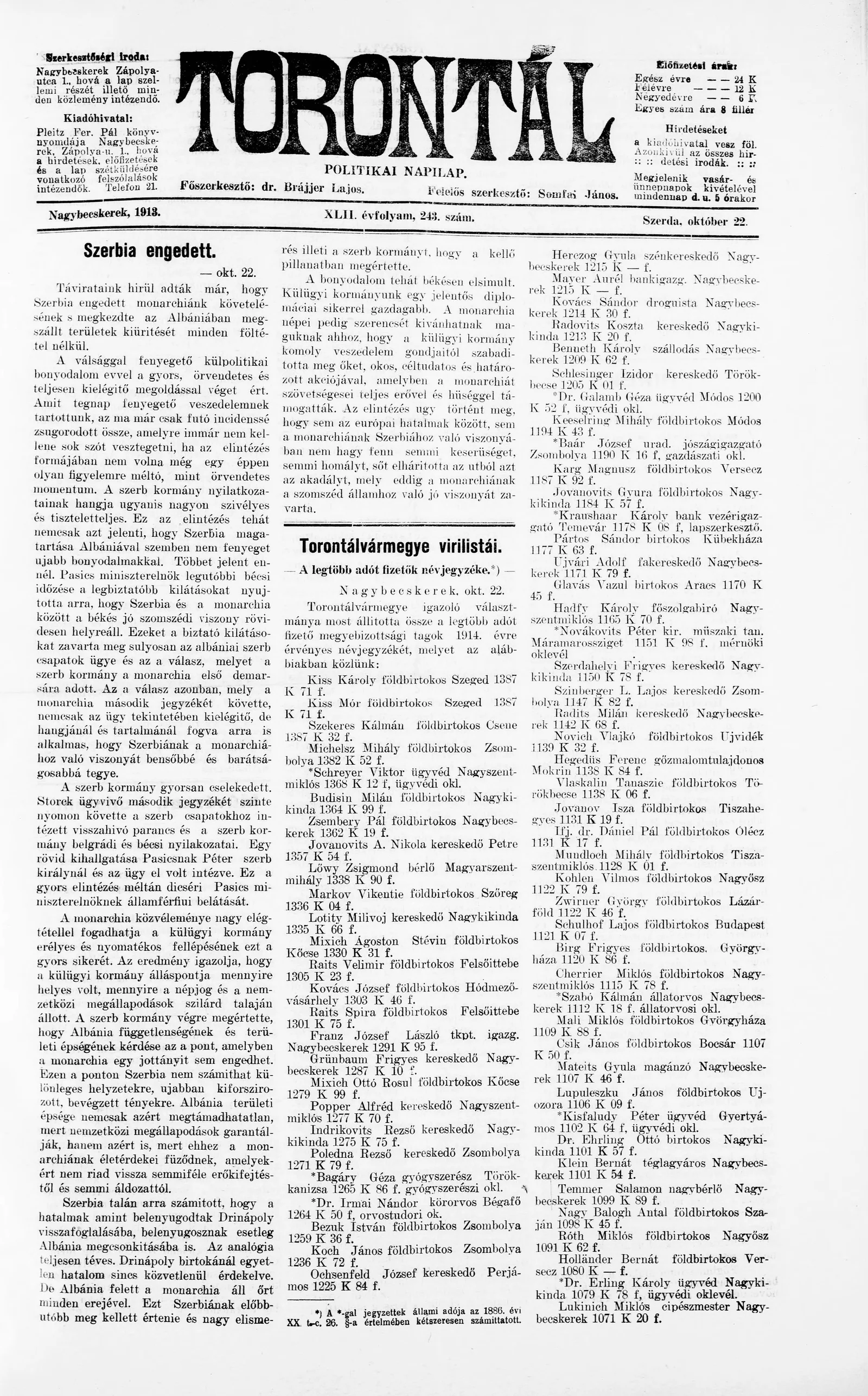 Torontál, 42. évf. 1913. október 22. 243. sz.