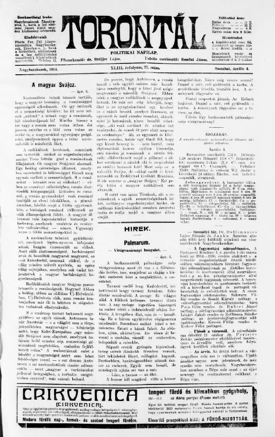 Torontál, 43. évf. 1914. április 4. 77. sz.