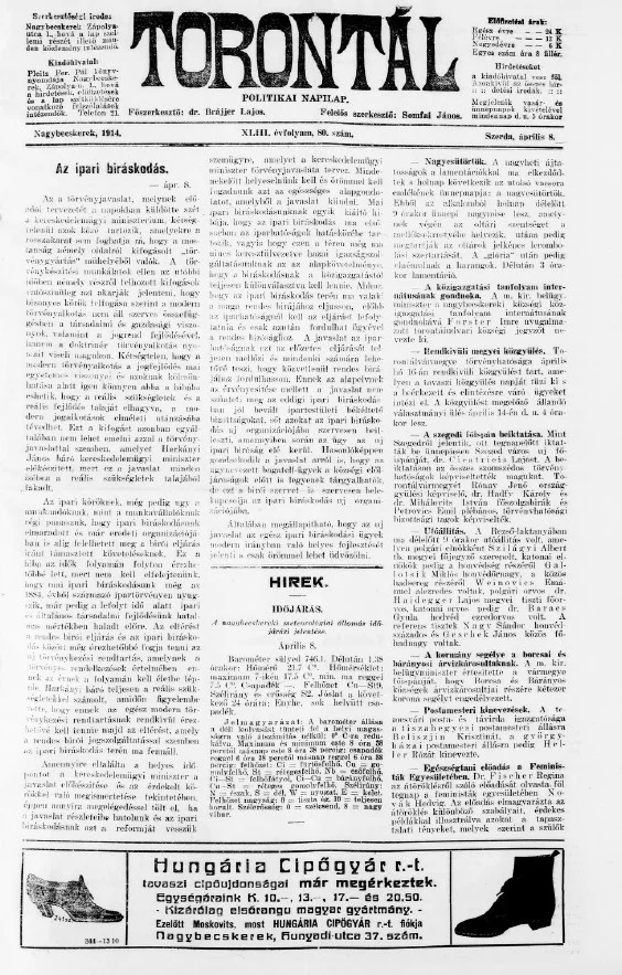 Torontál, 43. évf. 1914. április 8. 80. sz.