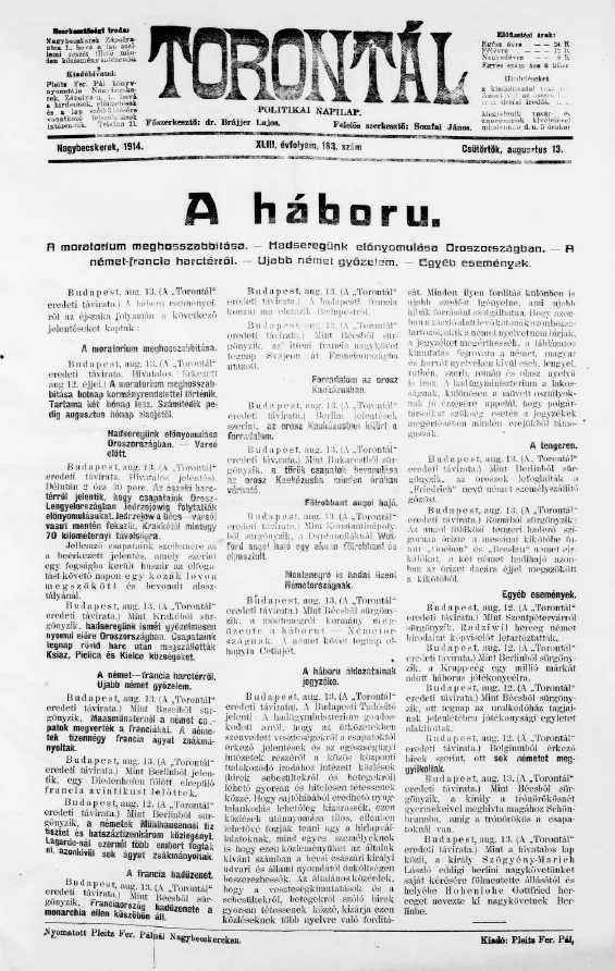 Torontál, 43. évf. 1914. augusztus 13. 183. sz.