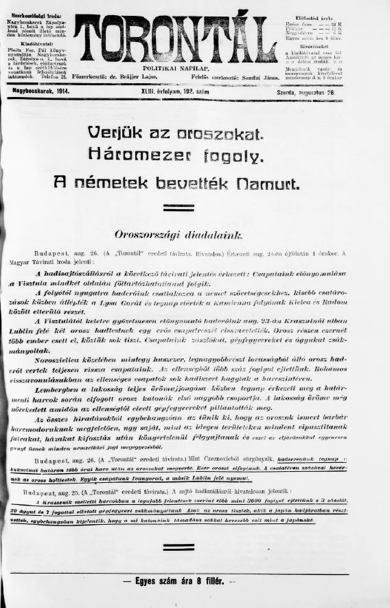 Torontál, 43. évf. 1914. augusztus 26. 192. sz.