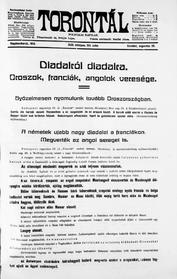 Torontál, 43. évf. 1914. augusztus 29. 195. sz.