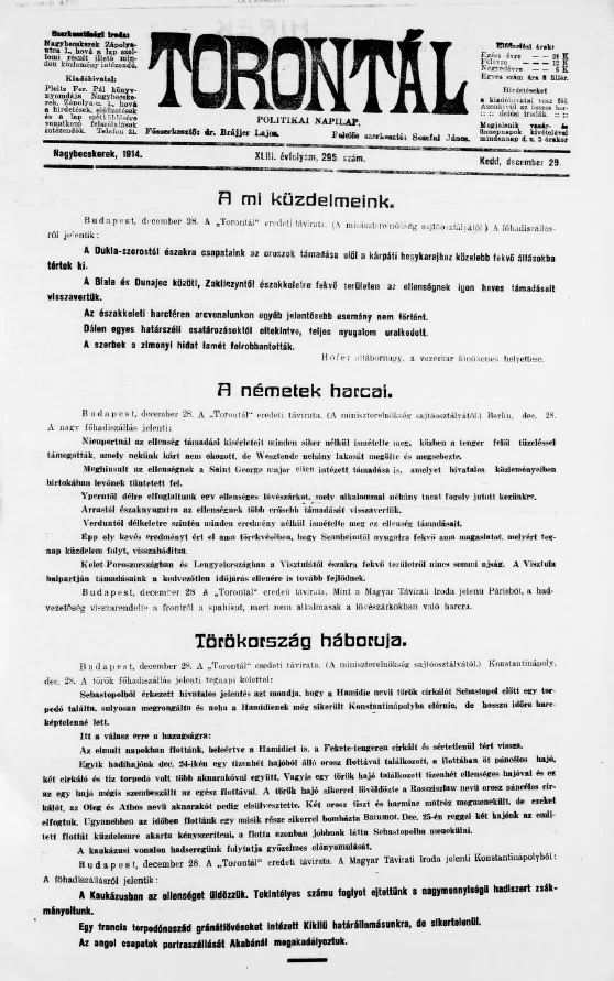 Torontál, 43. évf. 1914. december 29. 295. sz.
