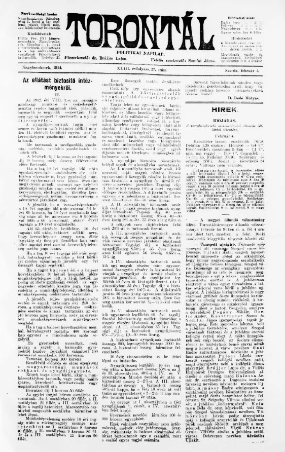 Torontál, 43. évf. 1914. február 4. 27. sz.
