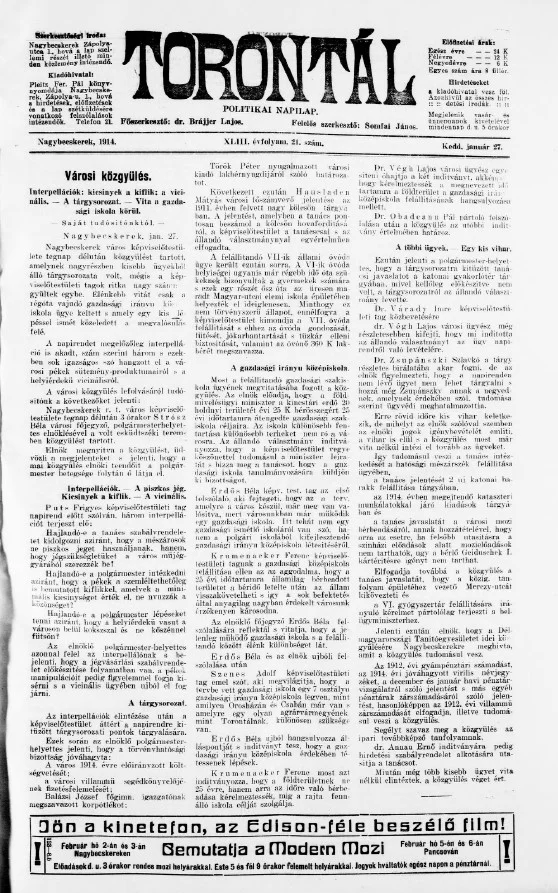 Torontál, 43. évf. 1914. január 27. 21. sz.