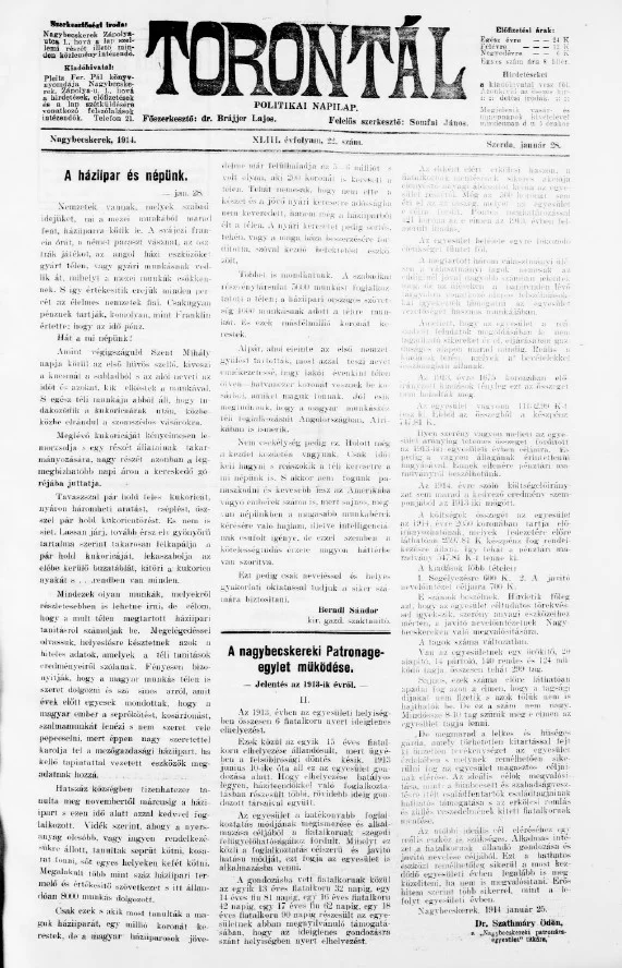 Torontál, 43. évf. 1914. január 28. 22. sz.