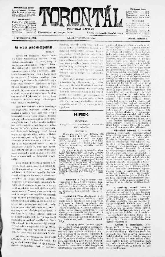 Torontál, 43. évf. 1914. március 6. 53. sz.