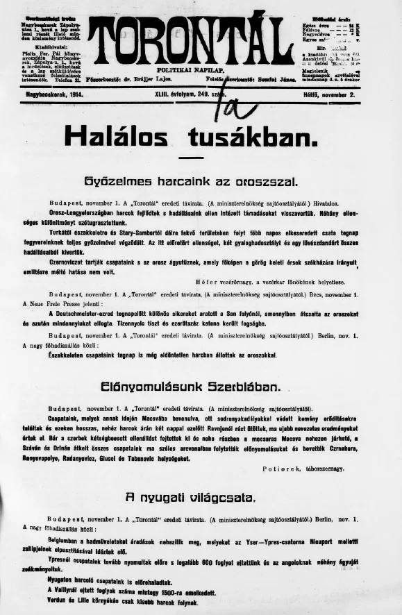 Torontál, 43. évf. 1914. november 2. 249. sz.