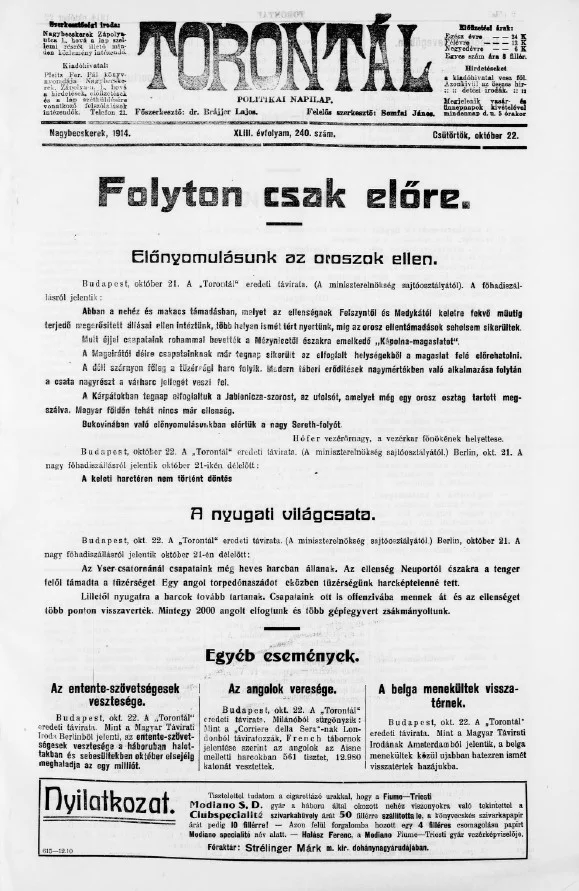 Torontál, 43. évf. 1914. október 22. 240. sz.