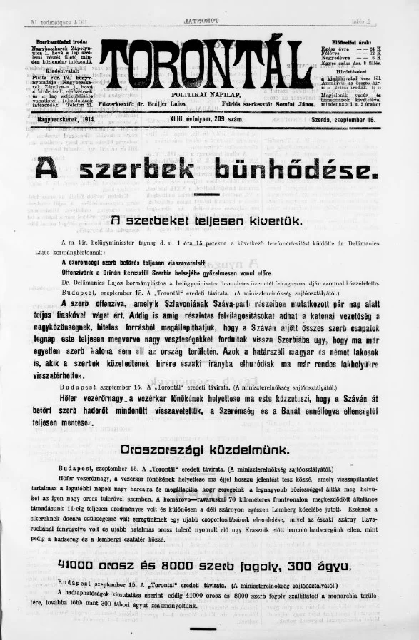 Torontál, 43. évf. 1914. szeptember 16. 209. sz.