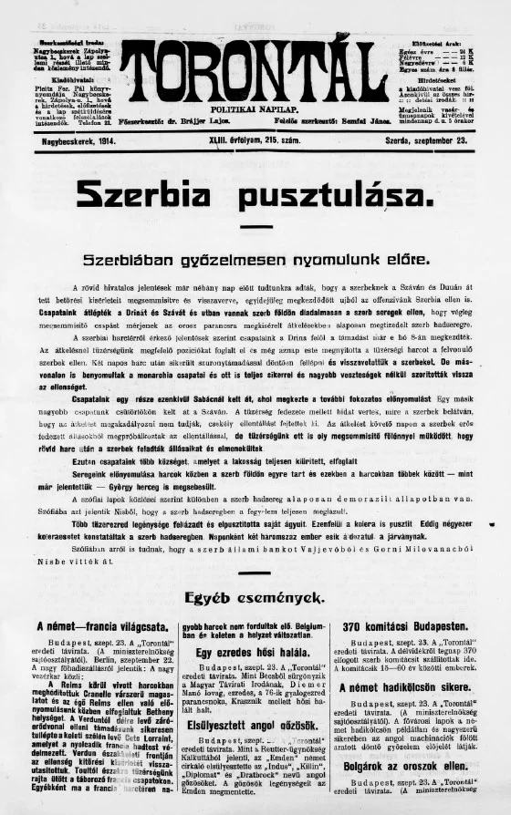 Torontál, 43. évf. 1914. szeptember 23. 215. sz.