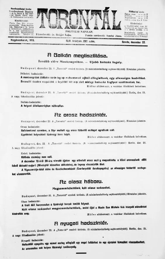 Torontál, 44. évf. 1915. december 22. 292. sz.