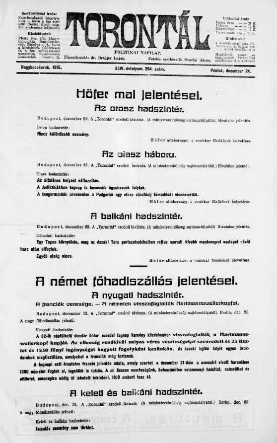 Torontál, 44. évf. 1915. december 24. 294. sz.