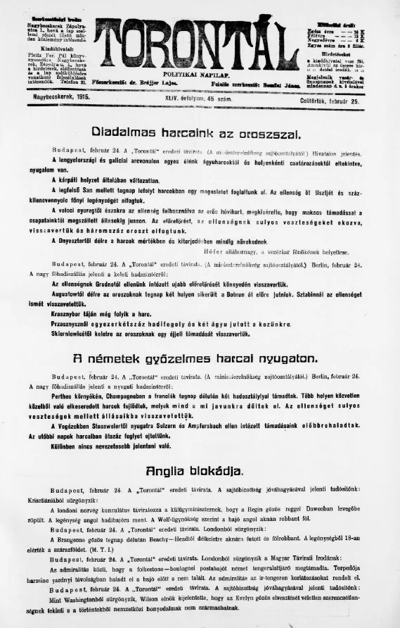 Torontál, 44. évf. 1915. február 25. 45. sz.