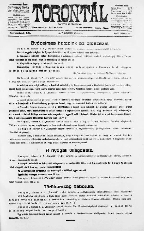 Torontál, 44. évf. 1915. február 9. 31. sz.