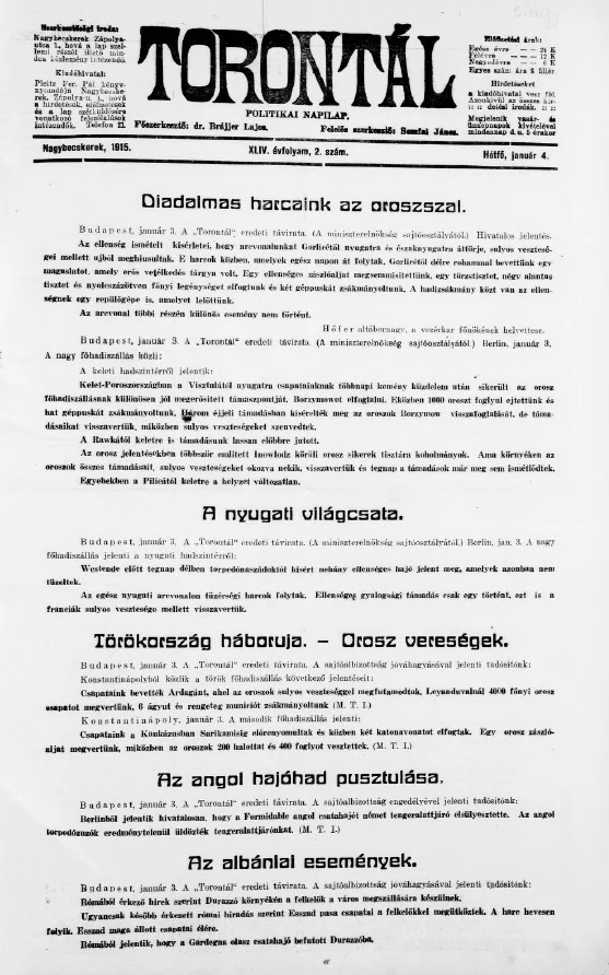 Torontál, 44. évf. 1915. január 4. 2. sz.