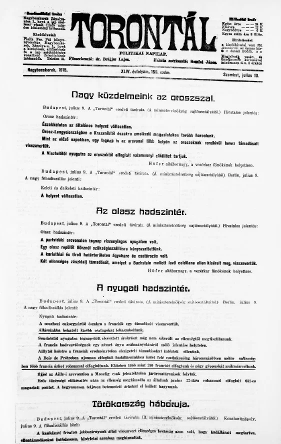 Torontál, 44. évf. 1915. július 10. 155. sz.
