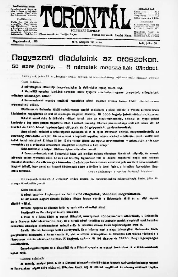 Torontál, 44. évf. 1915. július 20. 163. sz.
