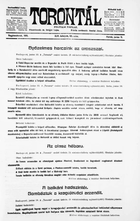 Torontál, 44. évf. 1915. június 11. 131. sz.