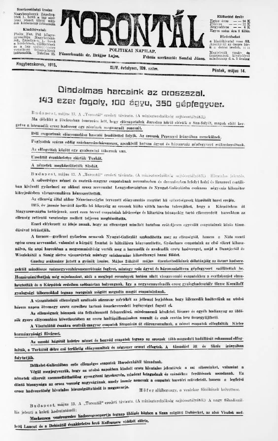 Torontál, 44. évf. 1915. május 14. 109. sz.