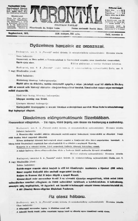 Torontál, 44. évf. 1915. november 9. 256. sz.