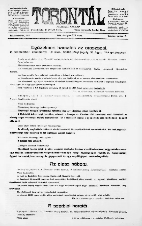 Torontál, 44. évf. 1915. október 2. 225. sz.