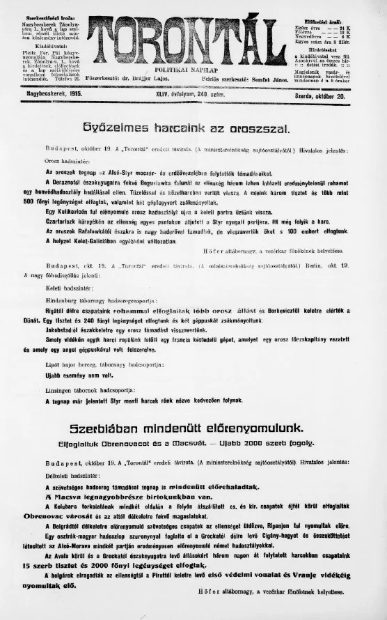 Torontál, 44. évf. 1915. október 20. 240. sz.